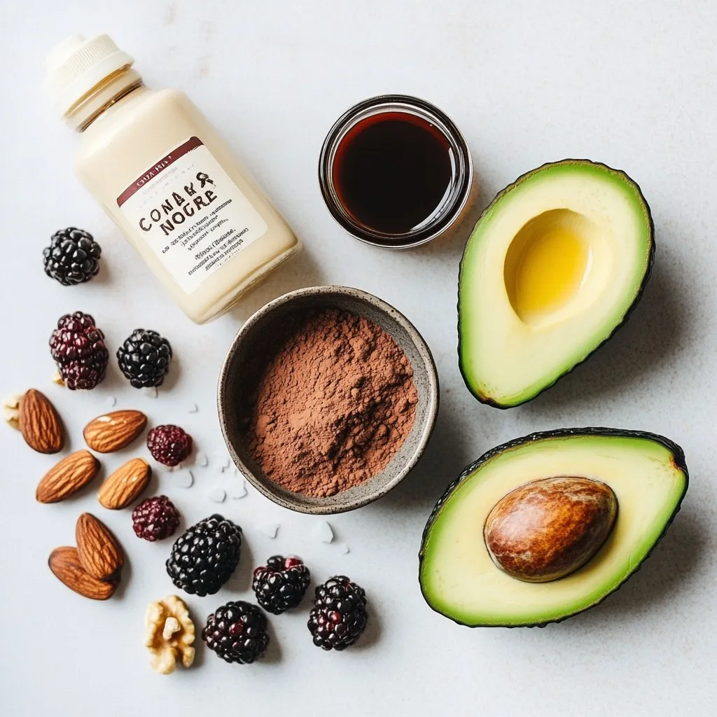 Um die Mousse perfekt zu machen, benötigen Sie frische Zutaten. Sie brauchen zwei reife Avocados. Vergewissern Sie sich, dass sie weich sind, aber nicht überreif. Schälen Sie die Avocados und entfernen Sie die Kerne. Messen Sie 120 g ungesüßtes Kakaopulver ab. Der Kakao gibt der Mousse ihren reichen Geschmack. Messen Sie auch 60 ml Ahornsirup und 60 ml Mandelmilch ab. Der Ahornsirup sorgt für die Süße und die Mandelmilch hilft, die Mousse cremig zu machen. Vergessen Sie nicht 1 Teelöffel Vanilleextrakt und eine Prise Meersalz. Diese Zutaten bringen ein tolles Aroma.