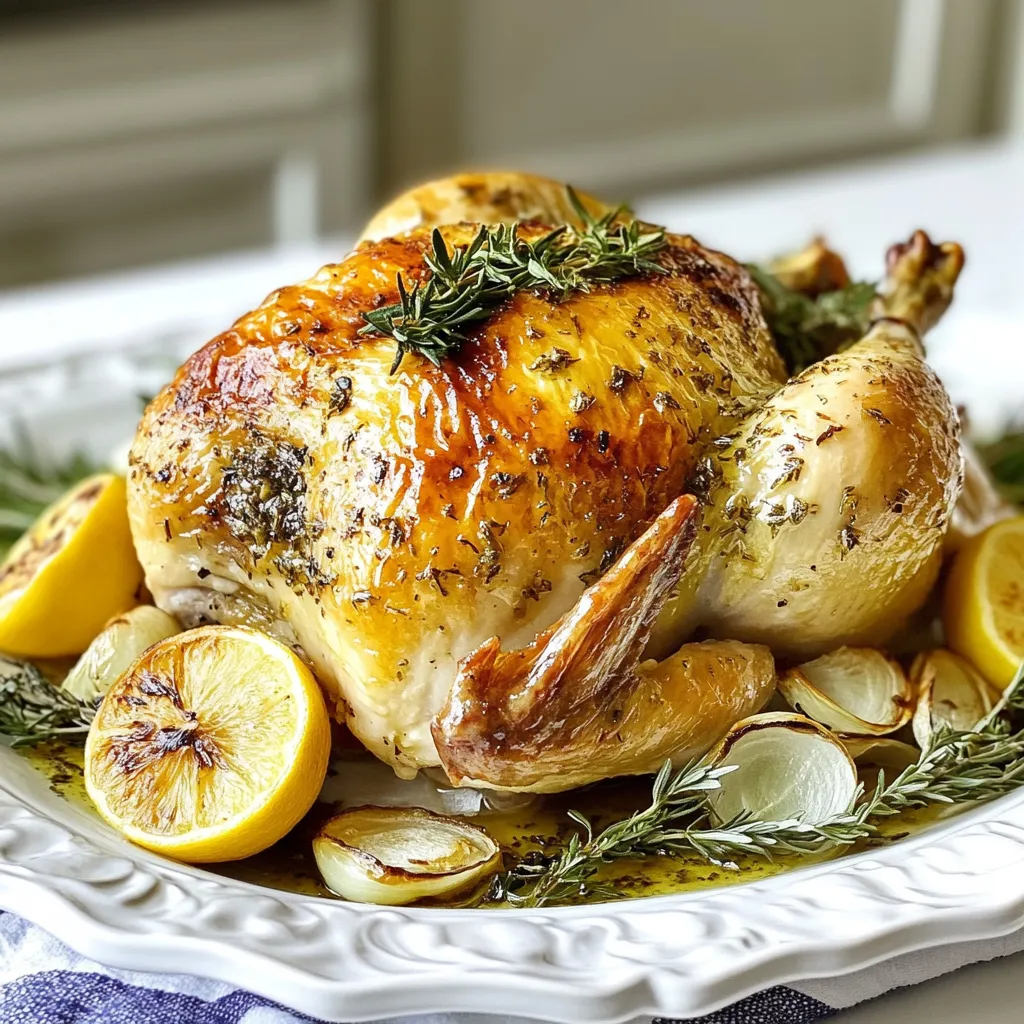 Ein saftiges Hähnchen, gewürzt mit frischen Kräutern und Zitrone, perfekt für ein festliches Essen.