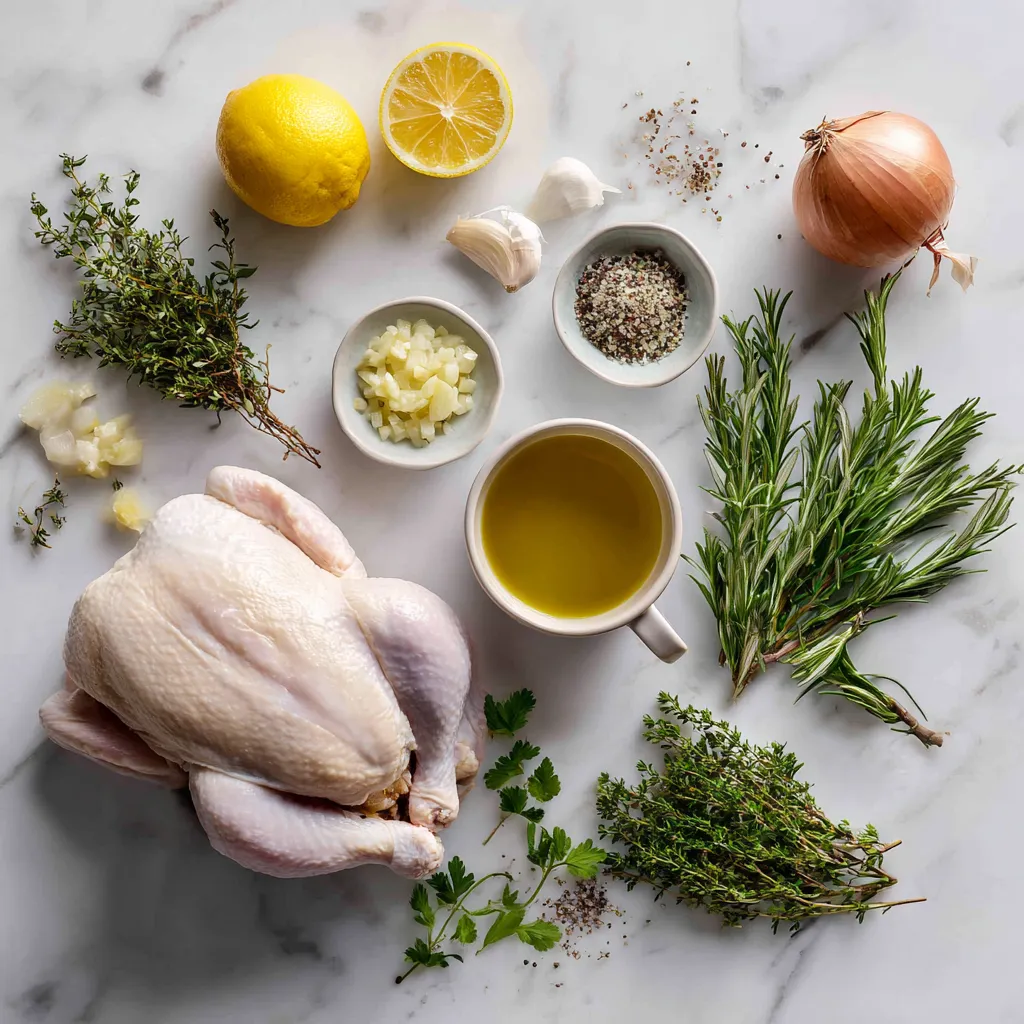 Hauptzutaten für Zitronen-Kräuter-Rösthähnchen